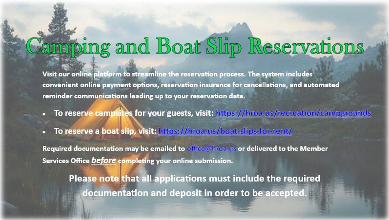 HROA Boat Slip Rentals Posted January 1, 2026 by ndic_support Visit HROA Boat Slip Lottery and Rentals Here