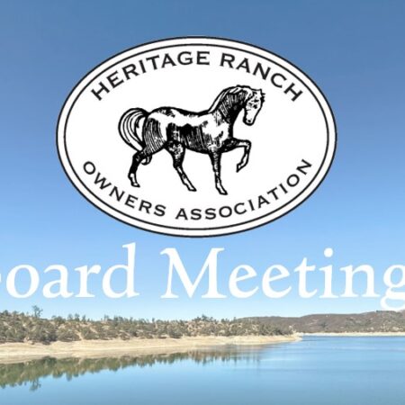 January 22, 2026 4:00 pm Executive Session, 6:00 pm Open Session @ Recreation Barn 2555 Equestrian Road, Paso Robles, CA 93446 Open Session Agenda A Meeting of the Board of Directors of Heritage Ranch Owners Association will be held on Thursday, January 22, 2026, at the Recreation Barn located at 2555 Equestrian Road, Paso Robles,… Read more »