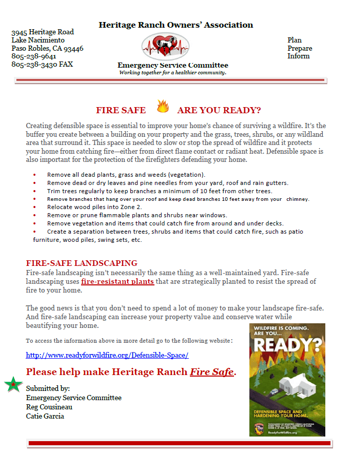 American Red Cross website – www.redcross.org On your smart phone, download the Wildland Fire and Earthquake APP.These APPs and their directions and connection to the Cal Fire “Incident Information” reports can be obtained in four quick taps on your smartphone.