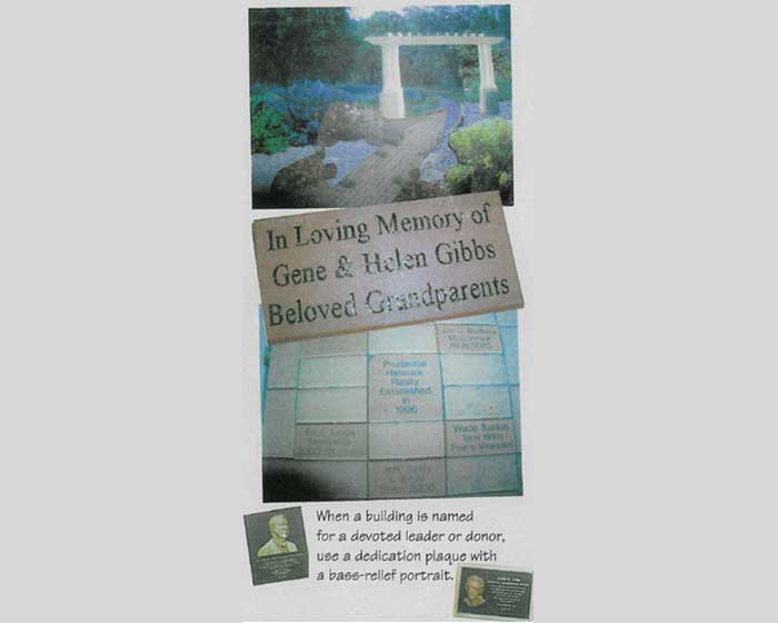 We have a beautiful location, a picturesque section of the park, behind the pool and tennis/basketball courts, where our donations will commemorate a special event in someone’s life, honor a friend or family member, memorialize someone special, advertise a business or remember a special pet.